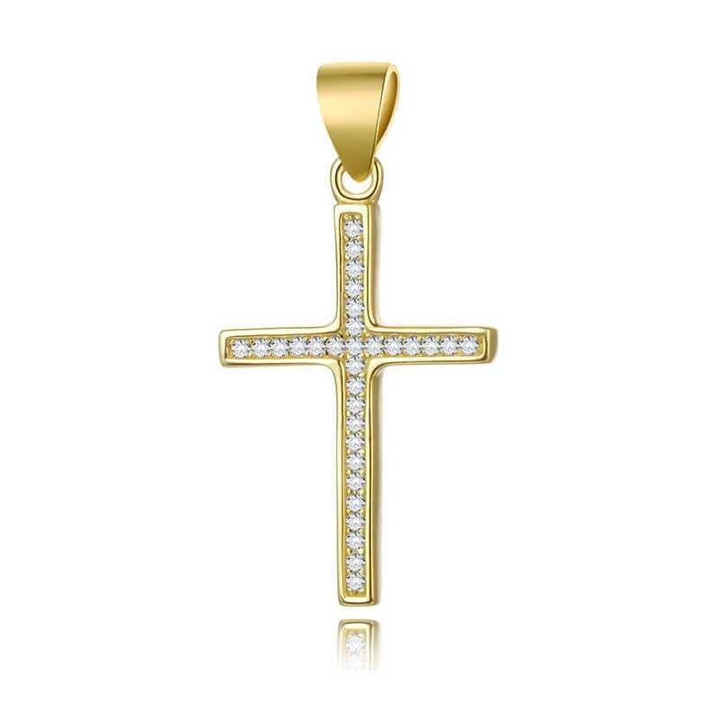 Přívěsek značky Beneto přináší eleganci a styl v jedinečném designu křížku. Vyrobený z kvalitního stříbra a zdobený pozlacením, dodává šperku nádech luxusu. Třpytivé čiré zirkony navíc umocňují jeho jedinečnost. S rozměry 3,1 x 1,7 cm se stává ideální volbou pro každou příležitost. Ozdobte svůj dekolt nadčasovým šperkem, který podtrhne vaši osobnost.