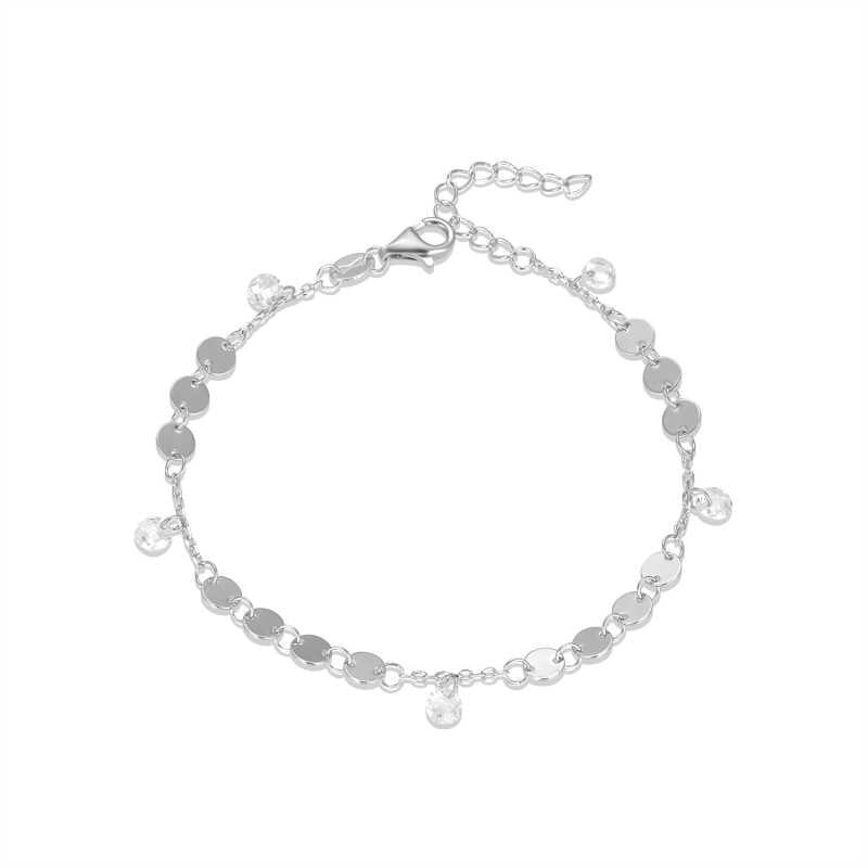 Náramek značky Beneto představuje elegantní kombinaci stříbra a jemného designu, který okouzlí každého. Rhodiovaný povrch zajišťuje nejen dlouhotrvající lesk, ale také minimalizuje riziko alergických reakcí. Drobné penízky a třpytivé zirkony dodávají šperku šmrnc a jedinečnost. S délkou 21 cm se skvěle přizpůsobí vašemu zápěstí a stane se dokonalým doplňkem každého outfitu.