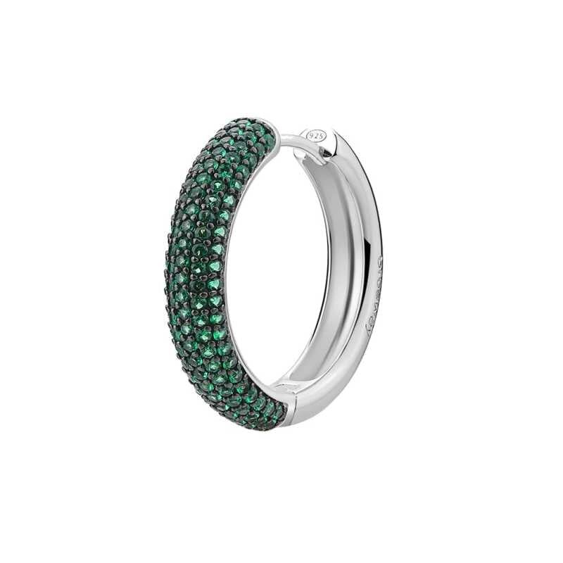 Elegance a nadčasovost spojují síly v této okouzlující single náušnici od značky Brosway. Vyrobená z vysoce kvalitního stříbra, nabízí rhodiovaný povrch, který chrání proti alergiím a zajišťuje trvalý lesk. Její tvar kruhu je bohatě zdoben zelenými kubickými zirkony, zatímco galvanicky pokovené...