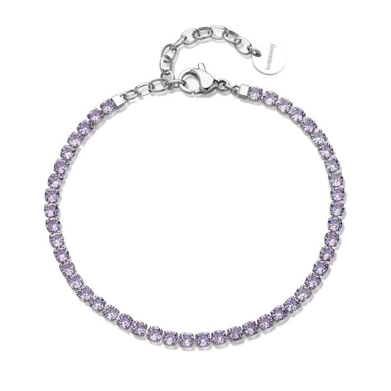 Tenisový ocelový náramek s fialovými zirkony Desideri BEI103 Brosway