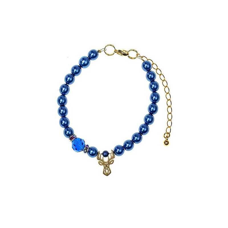Ručně vyráběný korálkový náramek značky Deers kombinuje eleganci modrých perliček Preciosa Crystals s leskem broušeného korálku Swarovski. Pozlacené kovové části a přívěsek tradičního jelínka dodávají náramku jedinečný charakter. Inspirován barvami Ukrajiny, náramek měří 17 cm s možností...