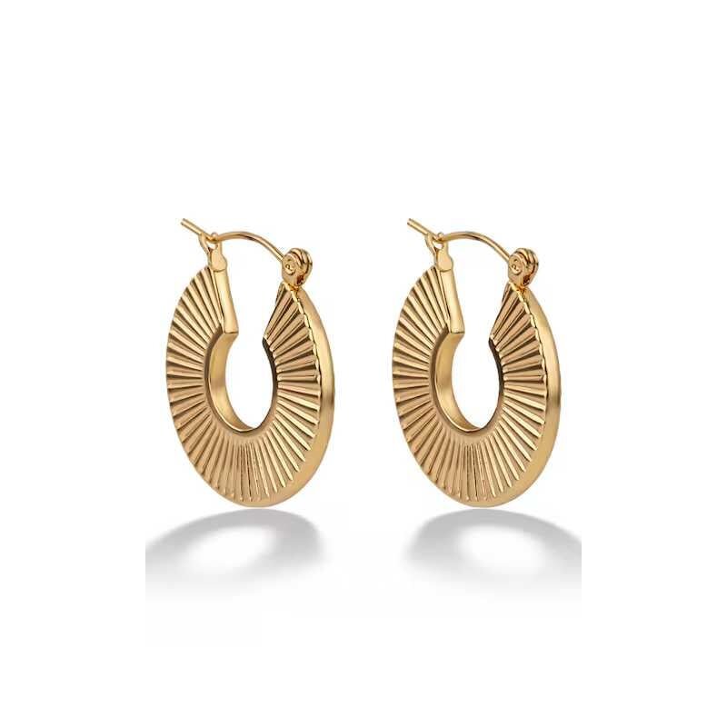 Kruhové náušnice značky Emily Westwood jsou synonymem elegance a vkusu. Vyrobené z kvalitní oceli a pokovené zlatým PVD povlakem, zaujmou jedinečnou texturou připomínající paprsky slunce. S průměrem 2,6 cm a praktickým zapínáním na francouzský zámek se skvěle hodí pro každou příležitost. Tento nadčasový šperk dokonale doladí váš outfit a podtrhne vaši osobnost.