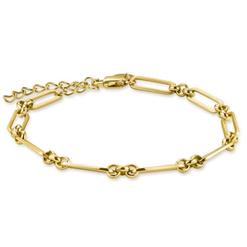 Náramek značky Rosefield z kvalitní oceli s elegantním pozlacením přináší do vašeho šperkového arzenálu nádech luxusu. Robustní články o tloušťce 0,6 cm zajišťují nejen styl, ale i odolnost. Díky možnosti nastavení délky od 16,5 do 19,5 cm se dokonale přizpůsobí každému zápěstí. Tento šperk se stane dokonalým doplňkem, který zvýrazní vaši přirozenou krásu a eleganci.