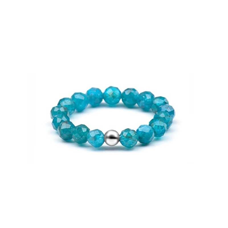 Minerální prsten značky Agato kombinuje eleganci s pozitivními vlastnostmi přírodního apatitu. Tyrkysové korálky přinášejí inspiraci a podporují osobní růst, zatímco lesklá kulička ze sterlingového stříbra dodává šperku noblesu. Díky pružnému provedení se prsten přizpůsobí každé velikosti (49–60...
