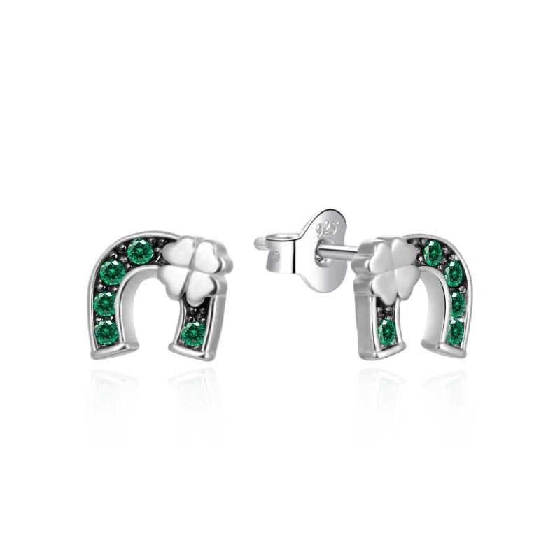 Stříbrné náušnice Podkova se zelenými zirkony AGT-E168PGR Agato