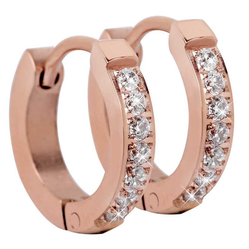 Elegantní náušnice značky Troli ve tvaru kroužků přinášejí do vašeho šperkovníku nadčasový styl. Vyrobené z kvalitní růžově pozlacené oceli, tyto náušnice jsou zdobeny třpytivými čirými krystaly, které dokonale reflektují světlo. Oživte svůj outfit a vyjádřete svou osobnost s tímto šperkem, který se hodí na každou příležitost. Nechte se okouzlit jejich jemností a elegancí.