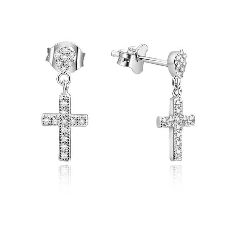 Stříbrné náušnice křížky s kamínky AGUP1176 Beneto