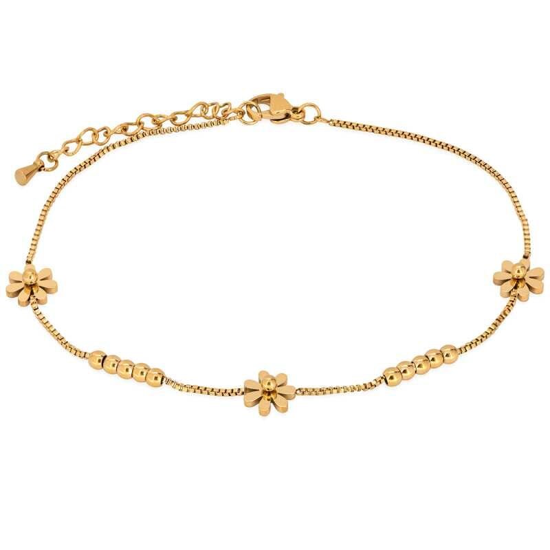 Jemný pozlacený řetízek na nohu s květinami Troli / Délka: 25 cm