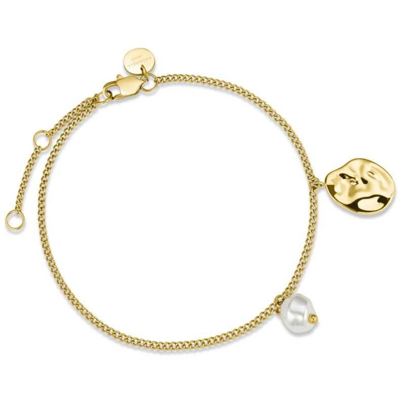 Náramek značky Rosefield spojuje eleganci a moderní design. Vyroben z kvalitní oceli a pozlacený, přináší luxusní vzhled, který zaujme na první pohled. Přívěsek s unikátním "promáčknutým" designem a jemná perla dodávají šperku osobitost. S nastavitelnou délkou od 16,5 do 19,5 cm se skvěle přizpůsobí každému zápěstí. Vytvořte stylový doplněk, který podtrhne vaši osobnost.