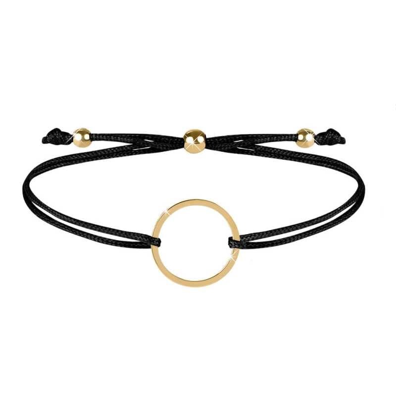 Šňůrkový náramek s kruhem černá/zlatá Troli