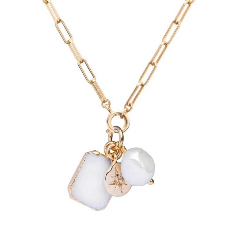 Půvabný pozlacený náhrdelník s pravou perlou Chunky Decadorn
