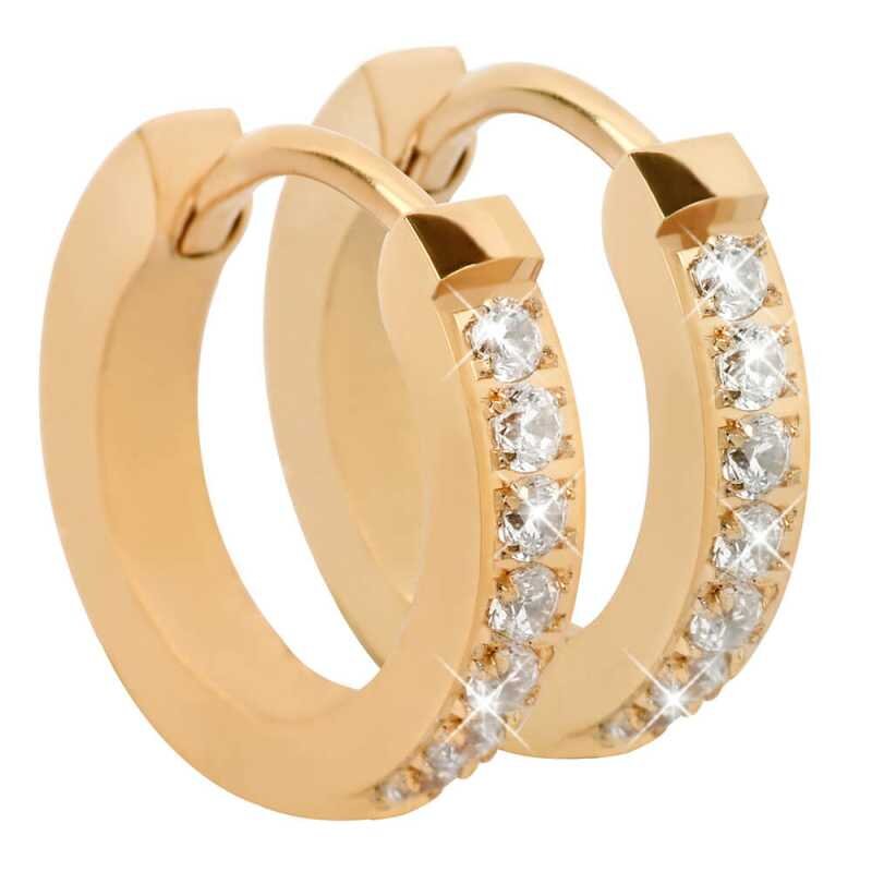 Elegantní náušnice značky Troli v nadčasovém kroužkovém designu dodají vašemu vzhledu šarm a sofistikovanost. Vyrobeny z kvalitní pozlacené oceli, tyto šperky vynikají třpytivými čirými krystaly, které zachycují světlo a přitahují pozornost. Ideální pro každou příležitost, tyto náušnice skvěle doplní váš outfit a podtrhnou vaši jedinečnost.