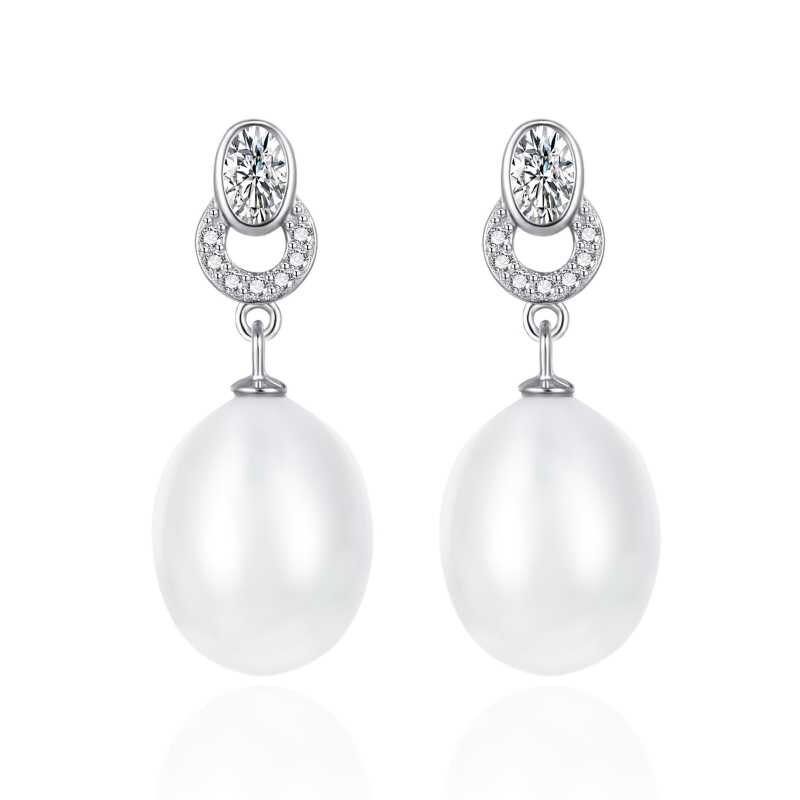Elegantní stříbrné náušnice se zirkony a perlou AGT-E096PW-P Agato