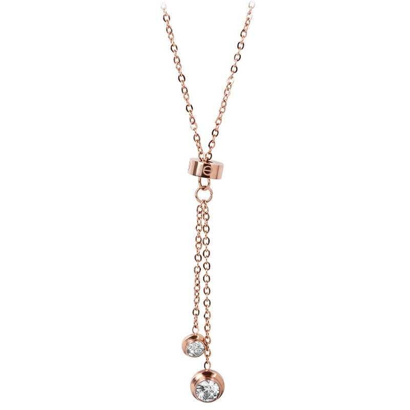 Růžově pozlacený ocelový náhrdelník s krystaly Troli