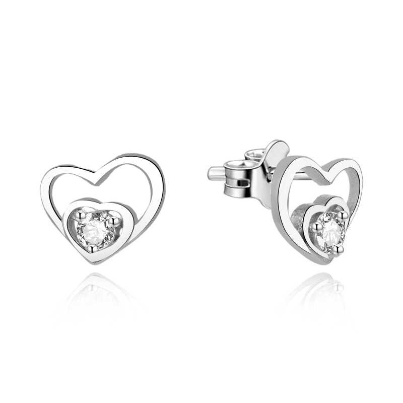 Stříbrné srdíčkové náušnice se zirkony AGUP1472 Beneto