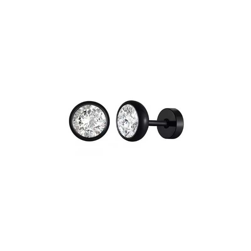 Slušivé černé náušnice z oceli s krystalem Troli
