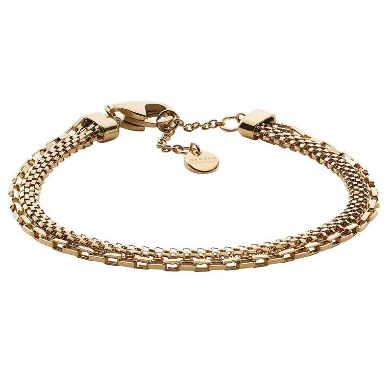 Elegantní dámský náramek značky Skagen spojuje kvalitu a styl v jednom. Vyrobený z odolné oceli s luxusním zlatým PVD povlakem, přitahuje pozornost svým dvojitým provedením. Délka 16,5 cm s možností prodloužení o 2,5 cm zajišťuje pohodlné nošení, zatímco zapínání na karabinu dodává praktičnost. Náramek je zakončen přívěskem s logem značky, což podtrhuje jeho jedinečnost a šarm.