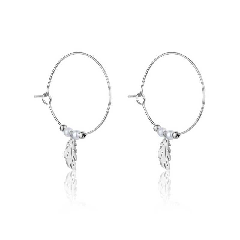 Dámské náušnice značky Emily Westwood přinášejí elegantní spojení kvalitní oceli a nadčasového designu. Jejich kruhový tvar je ozvláštněn syntetickými perličkami a ocelovými korálky, které dodávají náušnicím jedinečný šmrnc. Průměr 3,8 cm zaručuje pohodlné nošení, přičemž přívěsky s motivem pírka...