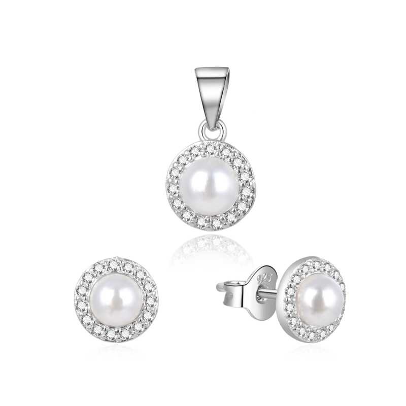 Půvabná stříbrná souprava šperků s pravými perlami AGSET270PL (přívěsek, náušnice) Beneto