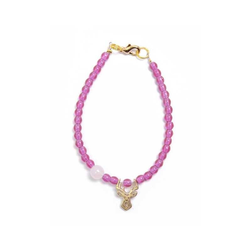 Náramek značky Deers spojuje eleganci a jemnost v jednom šperku. Složení z drobných fialových korálků a pozlacených kovových částí přináší jedinečný design, zatímco přívěsek jelínka a kulatý růženín dodávají osobitý nádech. Délka 16,5 cm a praktické zapínání na karabinku zajišťují pohodlné nošení. Tento náramek je ideálním doplňkem pro ty, kdo ocení kvalitu a styl.