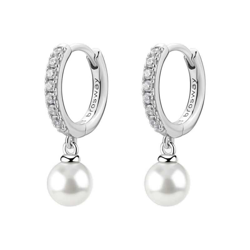 Stříbrné kruhové náušnice se zirkony a perlou Infinite White Fancy FIW144 Brosway