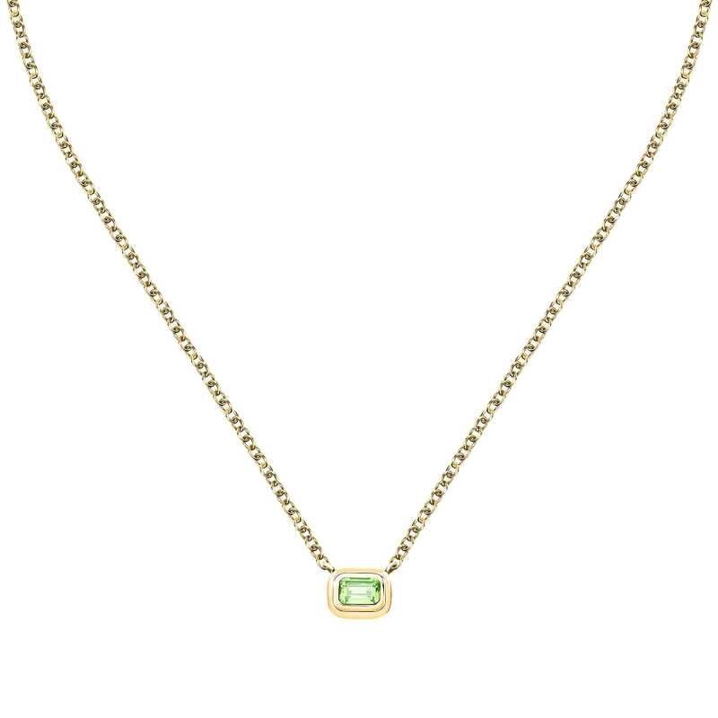 Elegantní náhrdelník značky Trussardi z kvalitní oceli s luxusním zlatým PVD povlakem přináší jedinečný styl a kouzlo. Jeho Rolo řetězovina je zdobena nádherným vybroušeným zeleným kamínkem kubické zirkónie, který přitahuje pozornost. S délkou 40 cm a možností prodloužení o 5 cm se dokonale přizpůsobí každému dekoltu. Ideální jako dárek pro všechny, kdo chtějí oslnit.