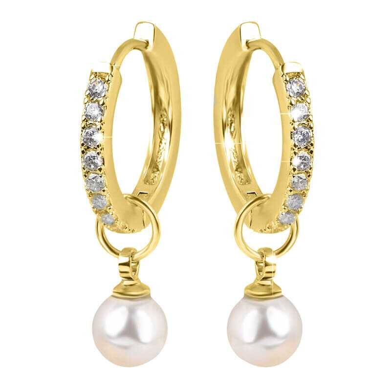 Pozlacené kruhové náušnice s krystaly a perlou 2v1 VREPE003GI Troli