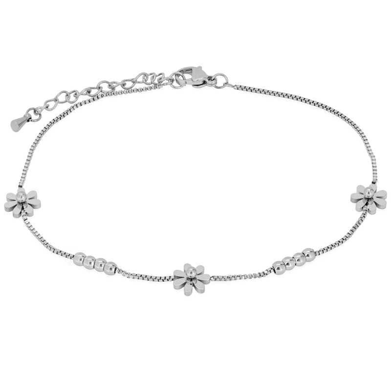 Něžný ocelový řetízek na nohu s květinami Troli