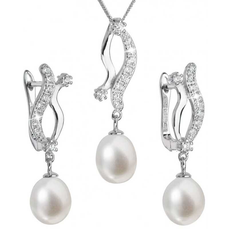 Luxusní stříbrná souprava s pravými perlami Pavona 29028.1 (náušnice, řetízek, přívěsek) Evolution Group