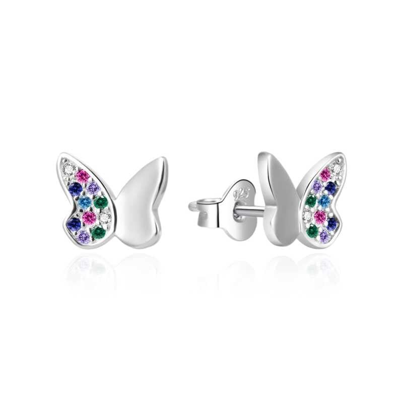Stříbrné náušnice Motýlci s barevnými zirkony AGT-E170PC Agato