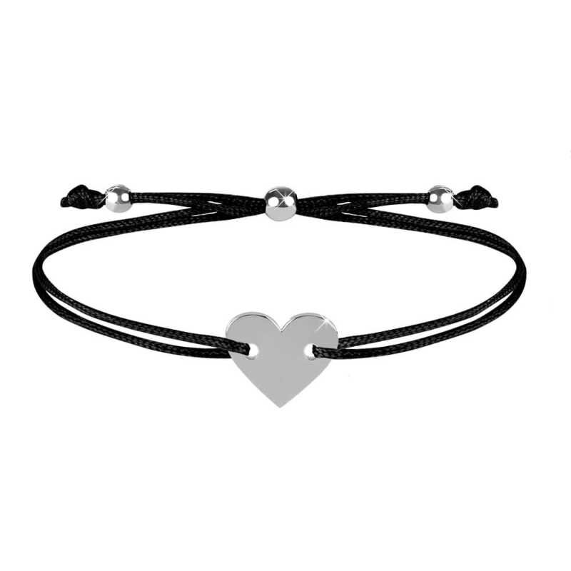 Šňůrkový náramek se srdcem černá/ocelová Troli