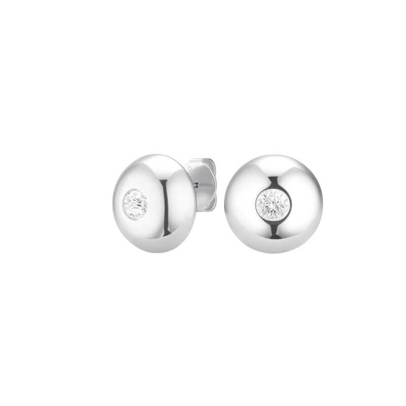 Dámské náušnice značky Rosefield spojují moderní design s kvalitními materiály. Vyrobeny z odolné oceli s rhodiovaným povrchem, minimalizují alergické reakce a zachovávají dlouhotrvající lesk. Vypouklý tvar a čiré krystaly dodávají šperku jedinečný vzhled, ideální pro milovnice minimalistického stylu. Zapínání na puzetku zajišťuje pohodlné nošení po celý den.