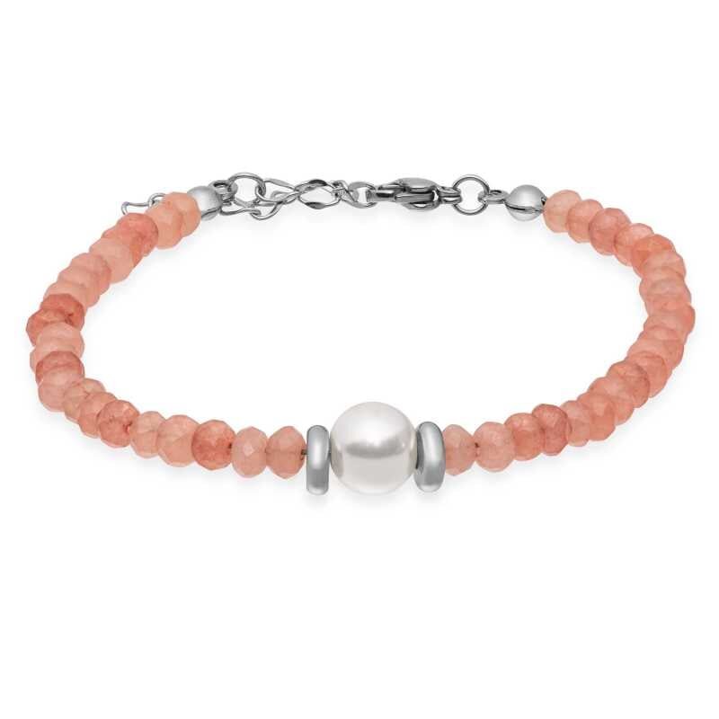 Něžný růžový korálkový náramek s perlou VESB0712S-A Troli