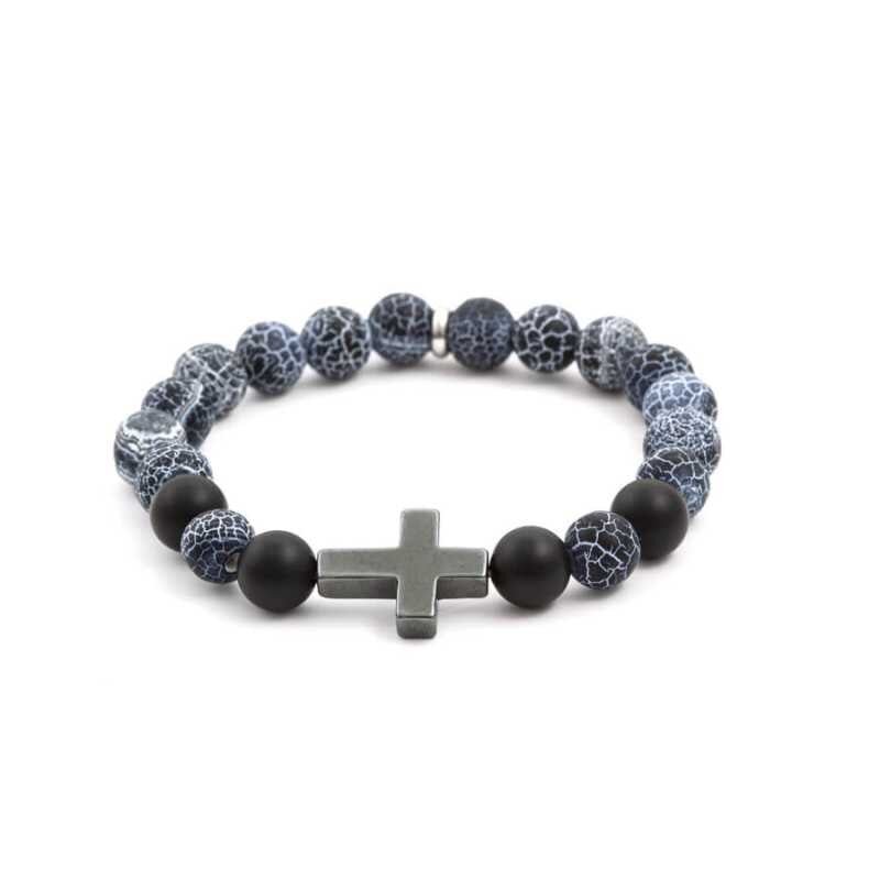 Náramek Agato, vyrobený z minerálních korálků a oceli, přináší eleganci a harmonii. Složený z šedého crackeru a černého matného achátu, ozdobený přívěskem křížku z hematitu, skvěle doplní váš styl. Díky pružné gumičce se nosí pohodlně na každém zápěstí. Achát posiluje kreativitu a sebevědomí,...