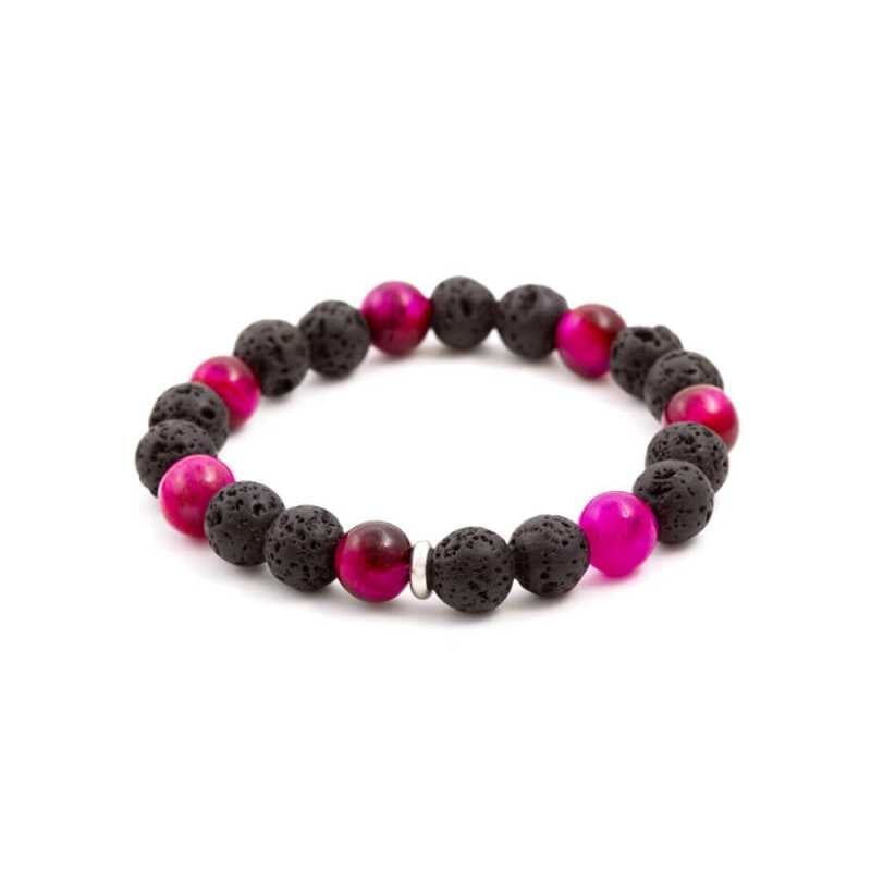 Nadčasový náramek pro ženy od značky Agato spojuje jedinečné minerální korálky purpurového tygřího oka a lávového kamene. Tento elegantní doplněk se díky pružné gumičce pohodlně nosí a skvěle doplní každý outfit. Délka náramku 17 cm a průměr korálků 0,8 cm zaručují perfektní padnutí. Lávový kámen...