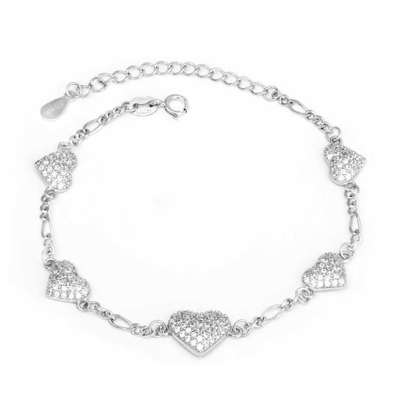 Stříbrný náramek se třpytivými srdíčky AGB783/21 Agato