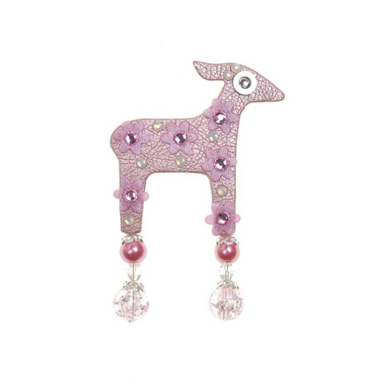 Vynikající brož od české značky Deers přináší hravou eleganci ve tvaru roztomilé laňky. Je vyrobena z kvalitní růžové syntetické kůže a zdobena jemnými kytičkovými motivy. Krystaly Preciosa, umělé perly a korálky dodávají tomuto kousku jedinečný šarm. S rozměry 3,9 x 6 cm se skvěle hodí jako výrazný doplněk pro ty, kteří chtějí vyniknout a odhalit svůj temperament.
