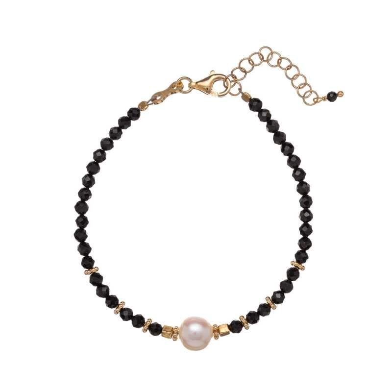 Korálkový náramek z černého spinelu s pravou perlou AL4108-Oro-Spinello Alisia