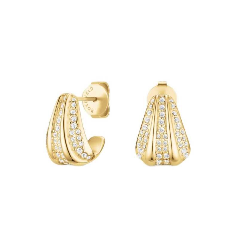 Tyto elegantní visací náušnice značky Rosefield přinášejí do vašeho šperkového arzenálu nádech luxusu. Vyrobené z kvalitní oceli a pozlacené žlutým zlatem, zaručují trvanlivost a krásný vzhled. Čiré krystaly metodou pavé přidávají šperku oslnivý lesk. S rozměry 1,08 x 1,4 cm a praktickým zapínáním na puzetku se skvěle hodí k jakémukoliv outfitu, a dodají mu nezaměnitelnou jiskru.