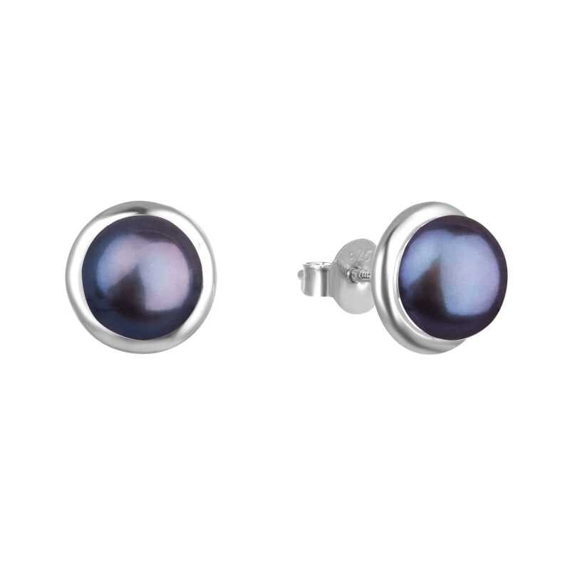 Elegantní stříbrné náušnice s tmavými perlami AGUP2686P Beneto