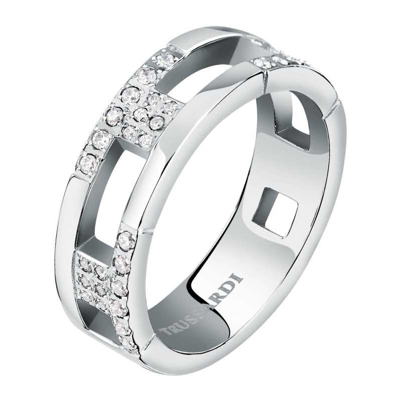 Slušivý ocelový prsten se zirkony T-Logo TJAXC40 Trussardi / Obvod: 56 mm - 56 mm
