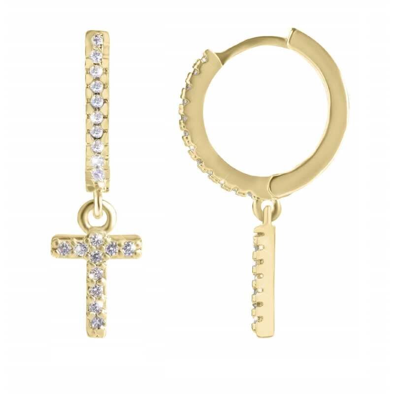 Kruhová pozlacená single náušnice "T" se zirkony Troli