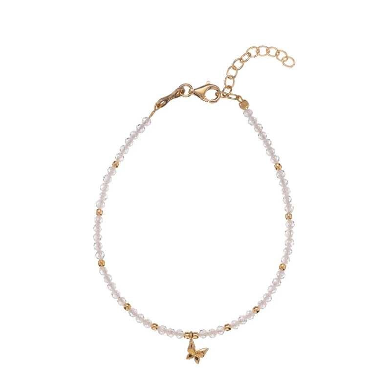 Elegantní dámský náramek od italské značky Alisia přináší spojení kvalitního designu a luxusních materiálů. Vyrobený ze sterlingového stříbra a pozlacený žlutým zlatem, je doplněn precizně vybroušenými korálky z čirého zirkonu a kovovými korálky. Přívěsek v podobě půvabného motýla dodává šperku...