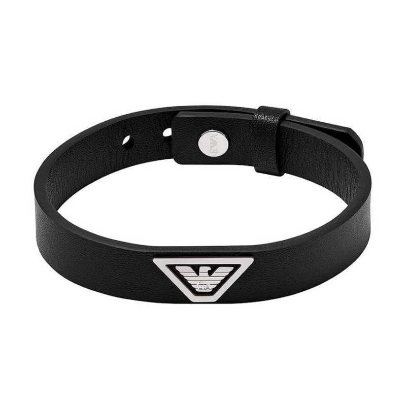 Elegance a nadčasovost se snoubí v náramku značky Emporio Armani. Vyrobený z kvalitní hladké černé kůže, tento šperk je zdoben ikonickým ocelovým logem, které podtrhuje jeho výjimečný design. Zapínání na přezku zajišťuje pohodlné nošení, zatímco délka 24,5 cm se přizpůsobí každému zápěstí. Tento náramek je ideální volbou pro muže, kteří chtějí vyjádřit svůj styl s nádechem luxusu.