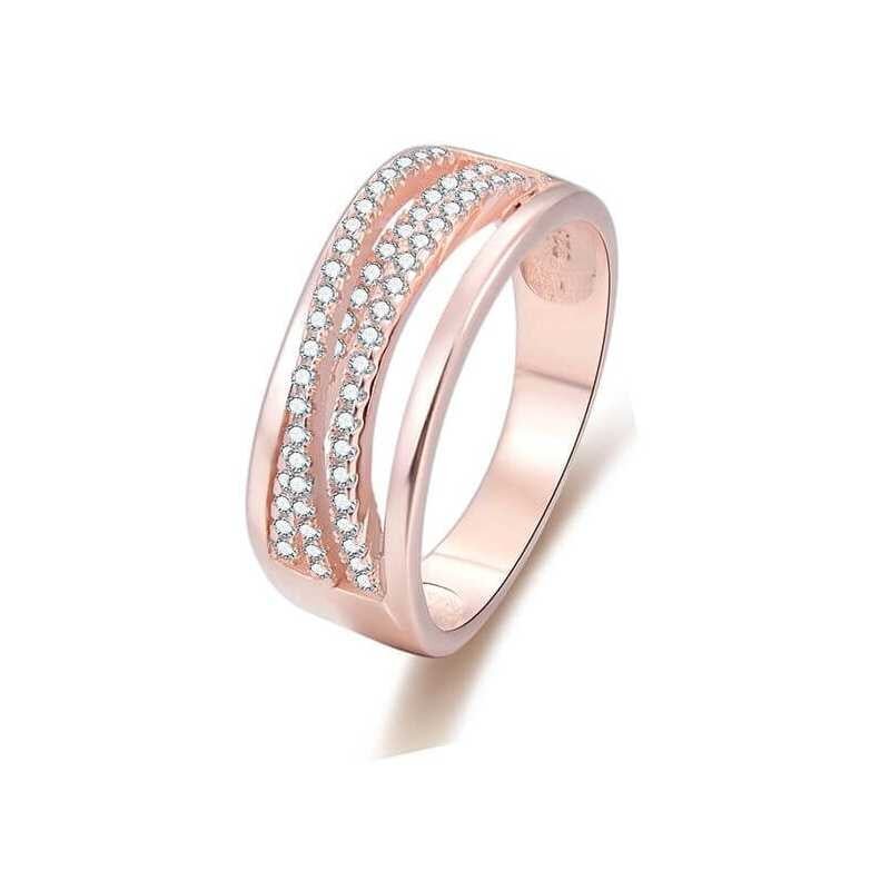 Luxusní prsten Beneto představuje dokonalou kombinaci elegance a vkusu. Vyrobený ze stříbra a pozlacený růžovým zlatem, vyniká oslnivým designem díky mnoha drobným čirým zirkonům, které mu dodávají jedinečný lesk. Tento šperk je ideálním doplňkem pro každou příležitost, ať už se jedná o slavnostní událost nebo běžný den. Obohaťte svou kolekci šperků o tento výjimečný kousek.