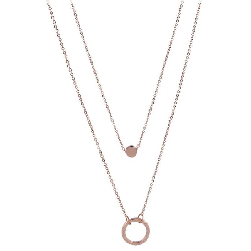 Dvojitý náhrdelník s kroužkovými přívěsky z růžově pozlacené oceli Troli