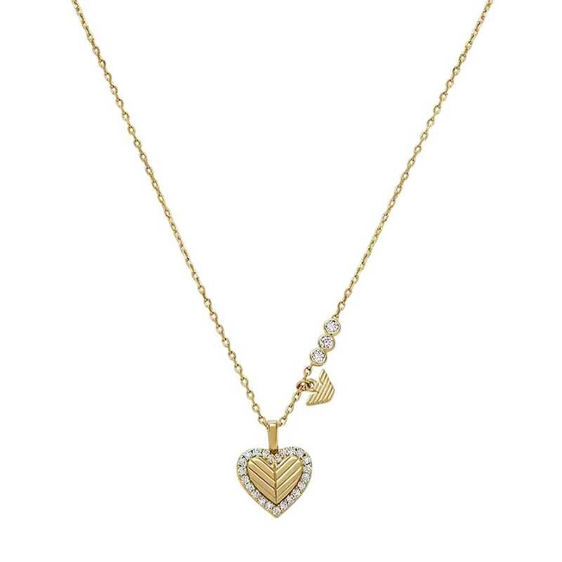 Půvabný pozlacený náhrdelník se zirkony Srdce EG3622710 Emporio Armani