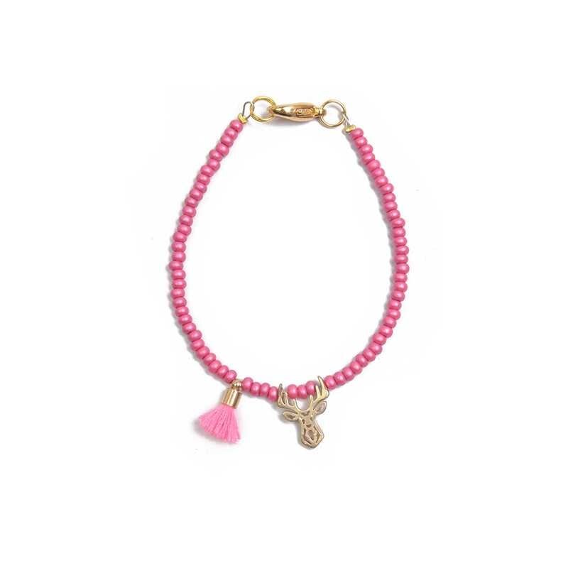 Fuchsiový korálkový mini náramek s jelínkem Deers