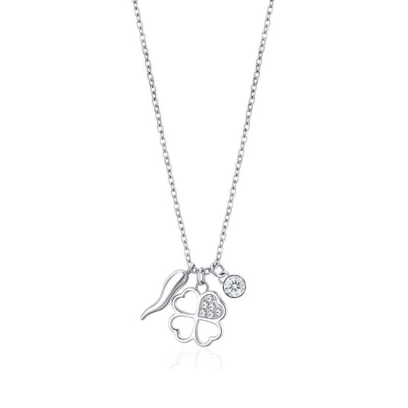 Elegantní náhrdelník značky Brosway je skvostným doplňkem pro každou ženu. Vyroben z kvalitní oceli, vyniká svým designem, který je umocněn přívěsky ve tvaru čtyřlístku a chilli papričky, symbolizujícími štěstí a vášeň. Čiré krystaly dodávají šperku jiskru a šarm. S délkou 44 cm se perfektně hodí...