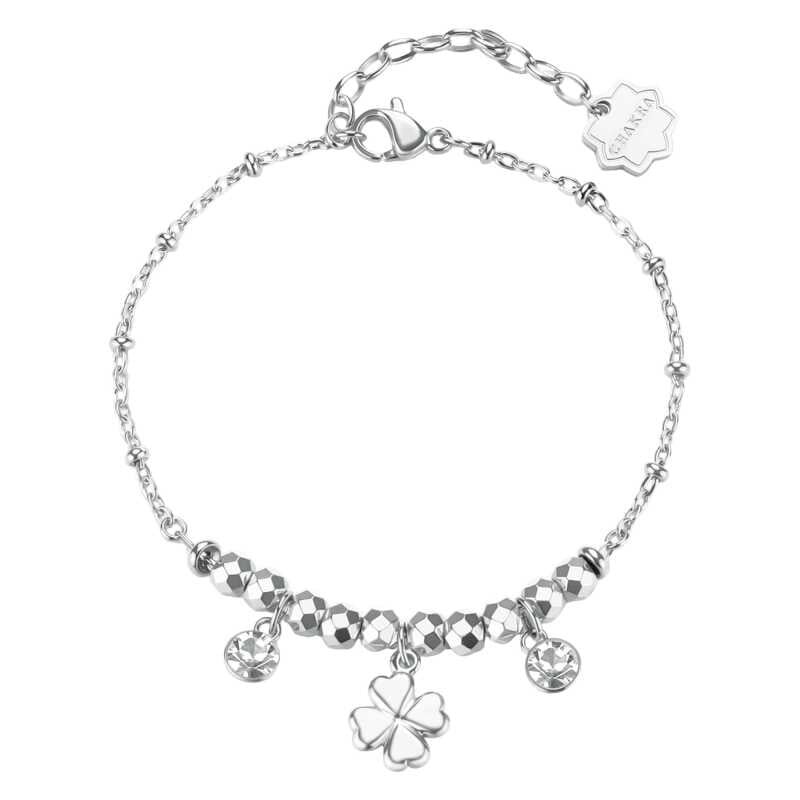 Dámský náramek značky Brosway je dokonalým spojením elegance a symboliky. Vyrobený z kvalitní oceli, přináší na váš zápěstí oslnivý třpyt čirých krystalů a designových korálků. Přívěsek ve tvaru čtyřlístku evokuje štěstí a pozitivní energii. Délka 19 cm a praktické zapínání na karabinku zaručují...